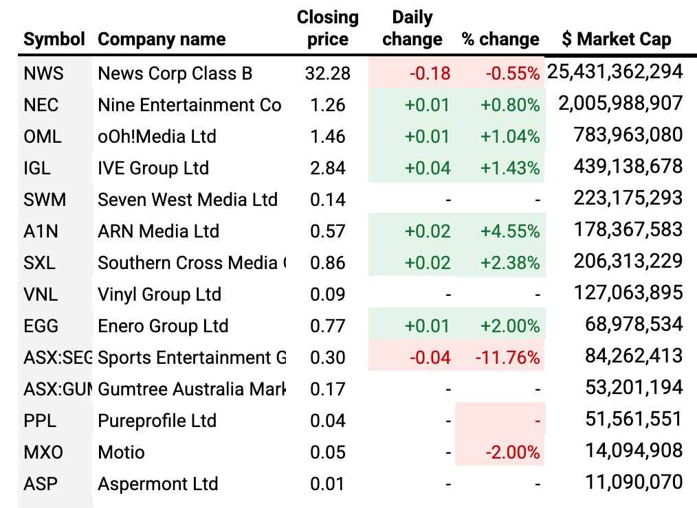 We also got more data about two non-ASX listed companies: Paramount’s free to air arm Ten, and the Gordon family’s WIN Corporation which includes its Nine affiliated regional licences plus radio and production assets.