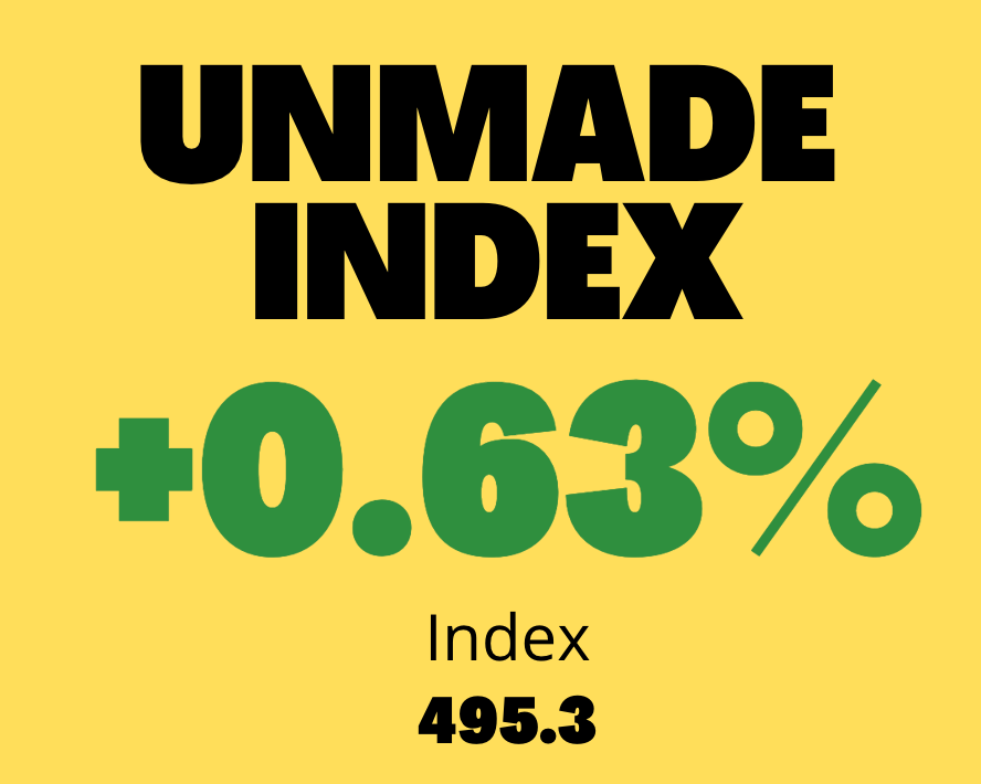 The Unmade Index rose by 0.63% to land on 495.3 points as it edges closer to moving back above the elusive 500-point threshold.