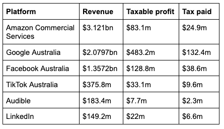 What’s noticeable is that in the five platforms included above, they account for revenue out of Australia of more than $7bn, yet paid a total of just $212m in local tax.