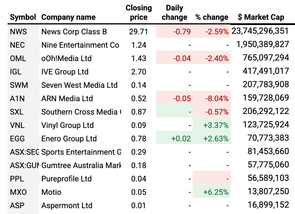 Outdoor advertising company Ooh Media also had a bad day, losing 2.4% yesterday.
