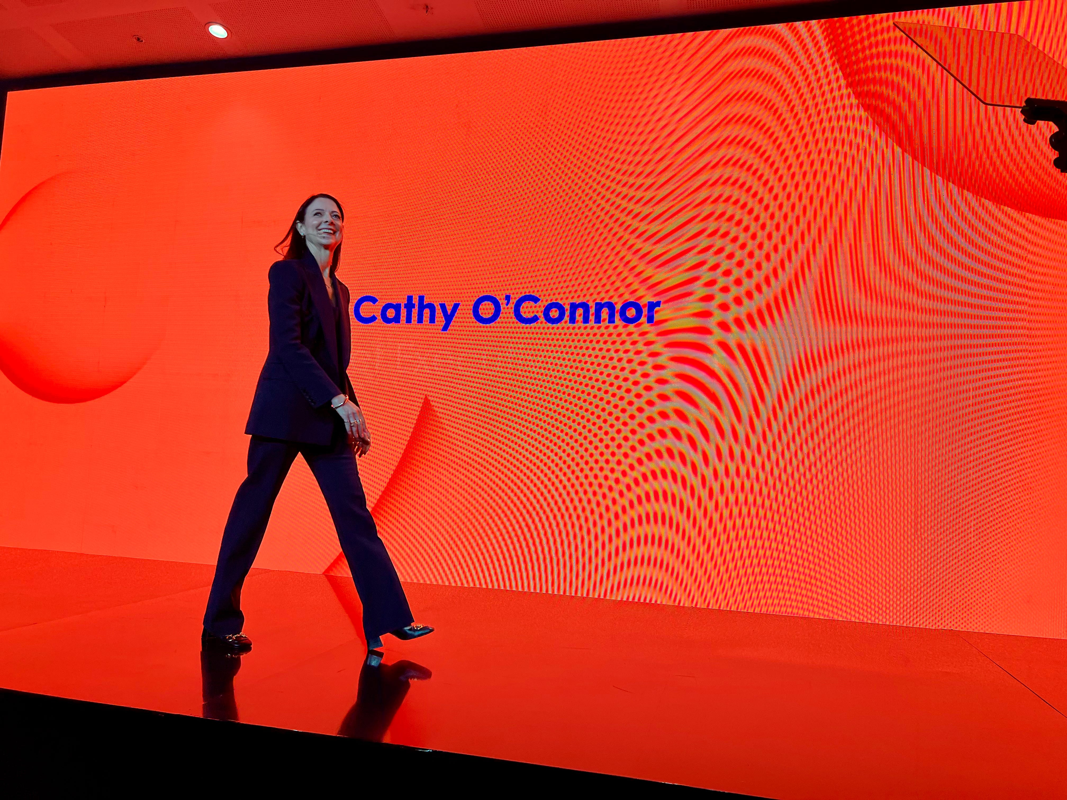 Cathy O’Connor exits the stage