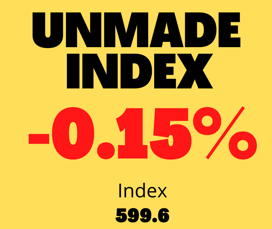 A drop of just 0.15% was enough to take the Unmade Index back down to 599.6%, signalling a 40% loss in the value of media and marketing stocks since the index began two years ago.